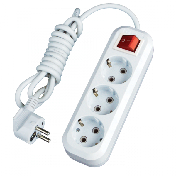 Удлинитель "Стандарт" 3 гнезда 5 метров 10А/2,2кВт с выключателем и заземлением ПВС 3х0,75 EKF PROxi