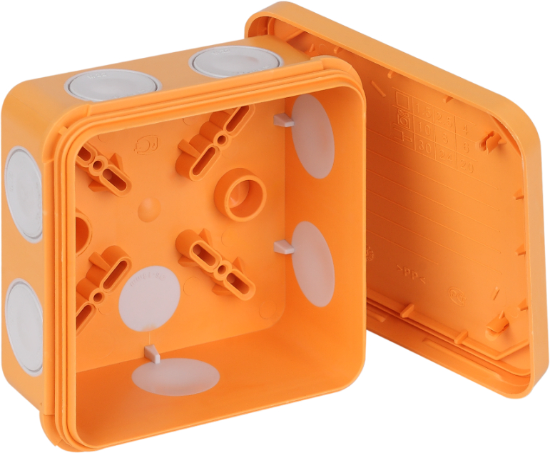 Файлы к Коробка распаячная для открытой проводки, двухкомпонентная 85х85х45 мм, огнестойкая HF, 8 вводов, IP67, керам.клеммник на 6 пол. до 6мм2 Тусо