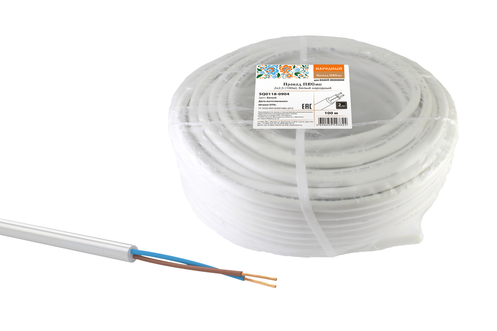 Файлы к ПВСмб 2х2,5 (100м), белый Народный