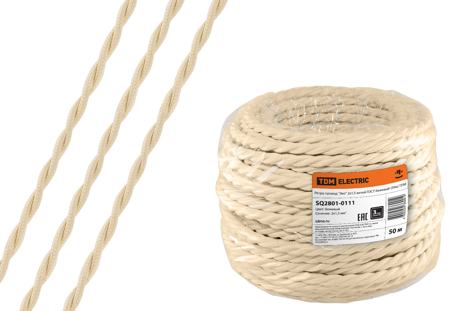 Файлы к Ретро провод "Эко" 2х1,5 витой ГОСТ бежевый (50м) TDM