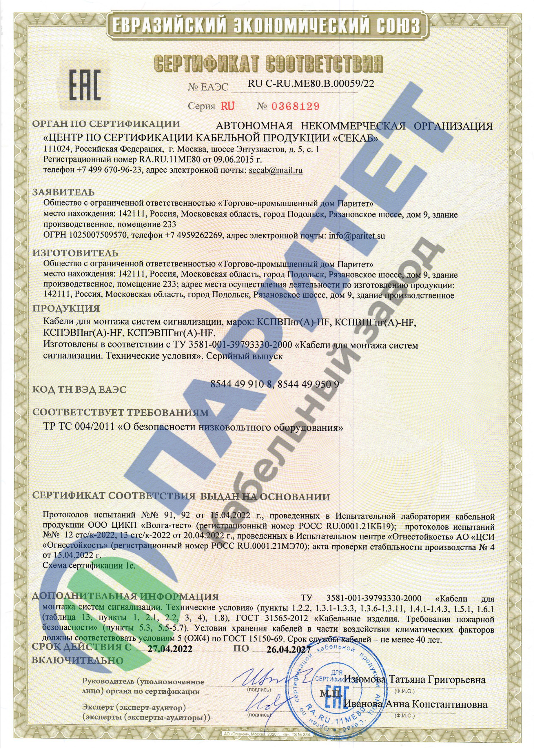 Файлы к КСПЭВПнг(А)-HF 1х2х0,80 (Паритет)