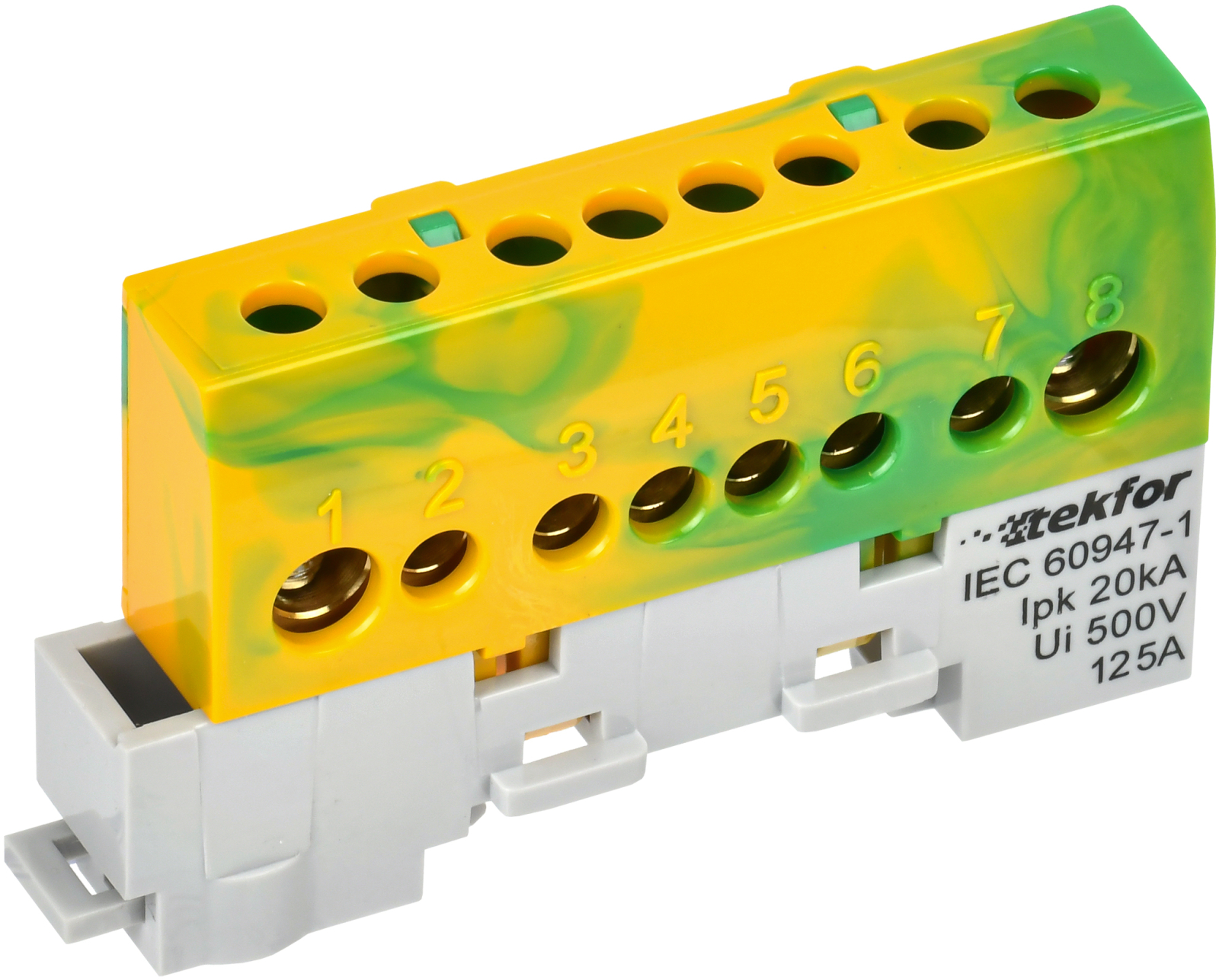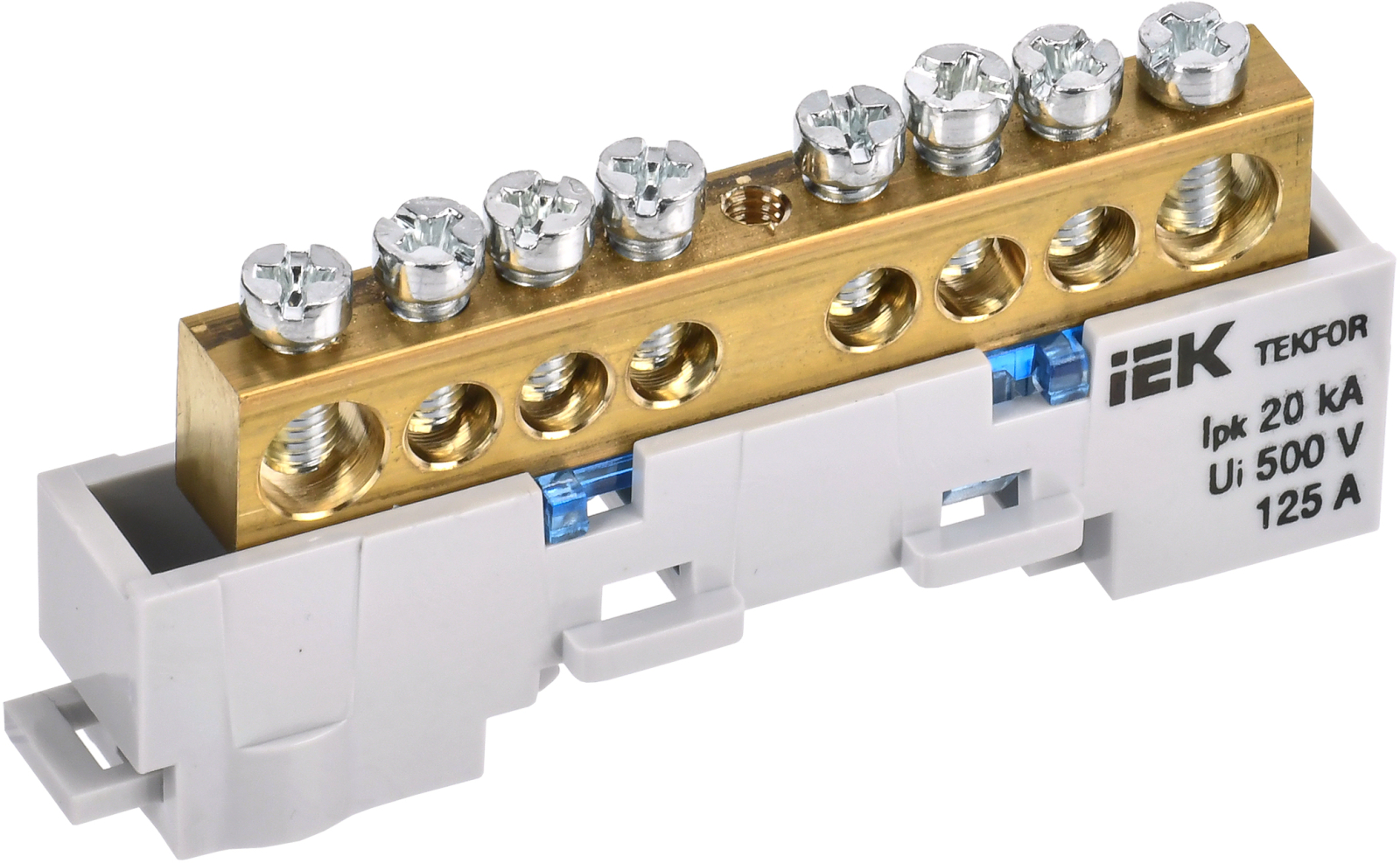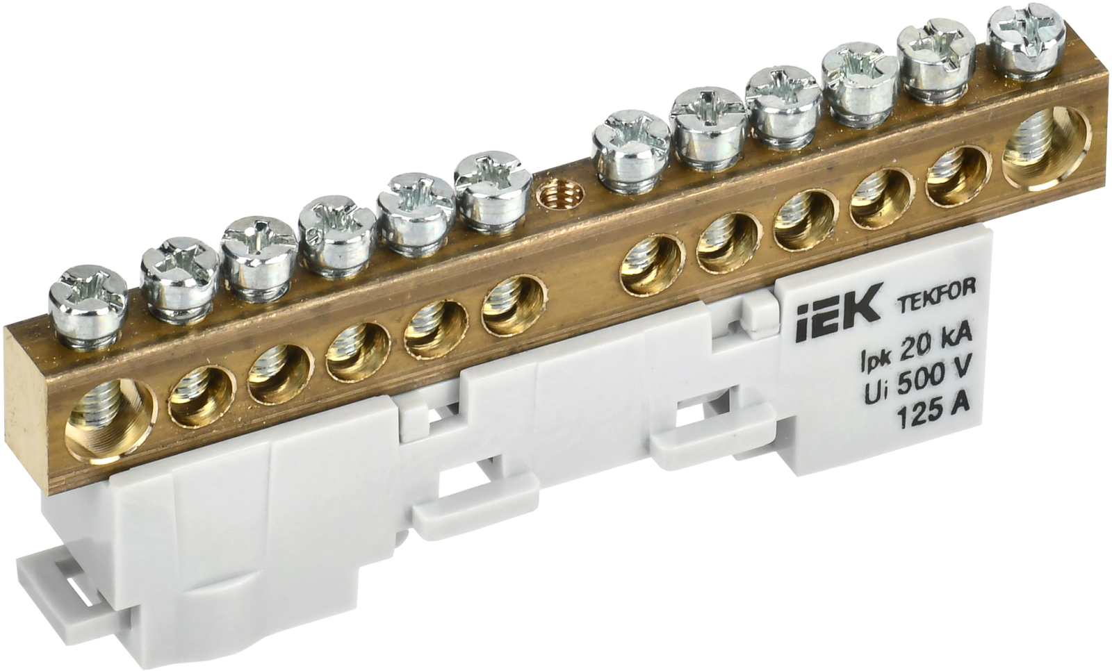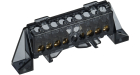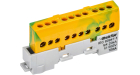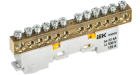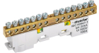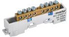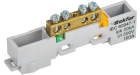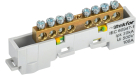 Шина "0" PE 8x12мм 6 отверстий латунь с контактной пластиной 2 зелёных угловых изолятора EKF PROxima