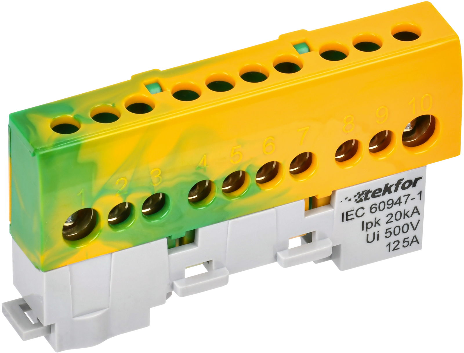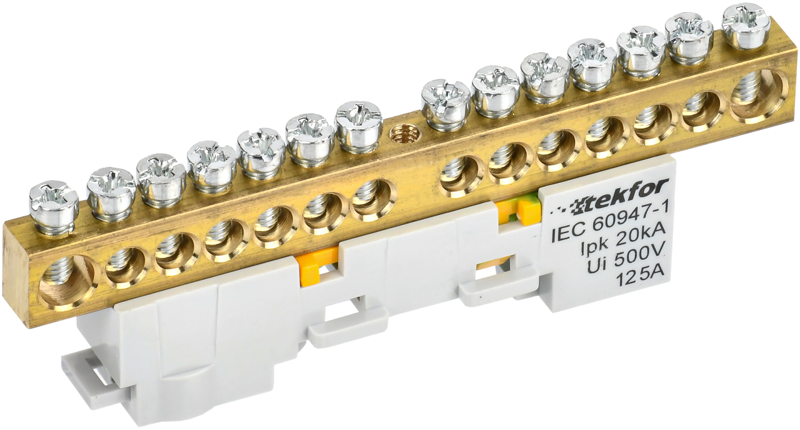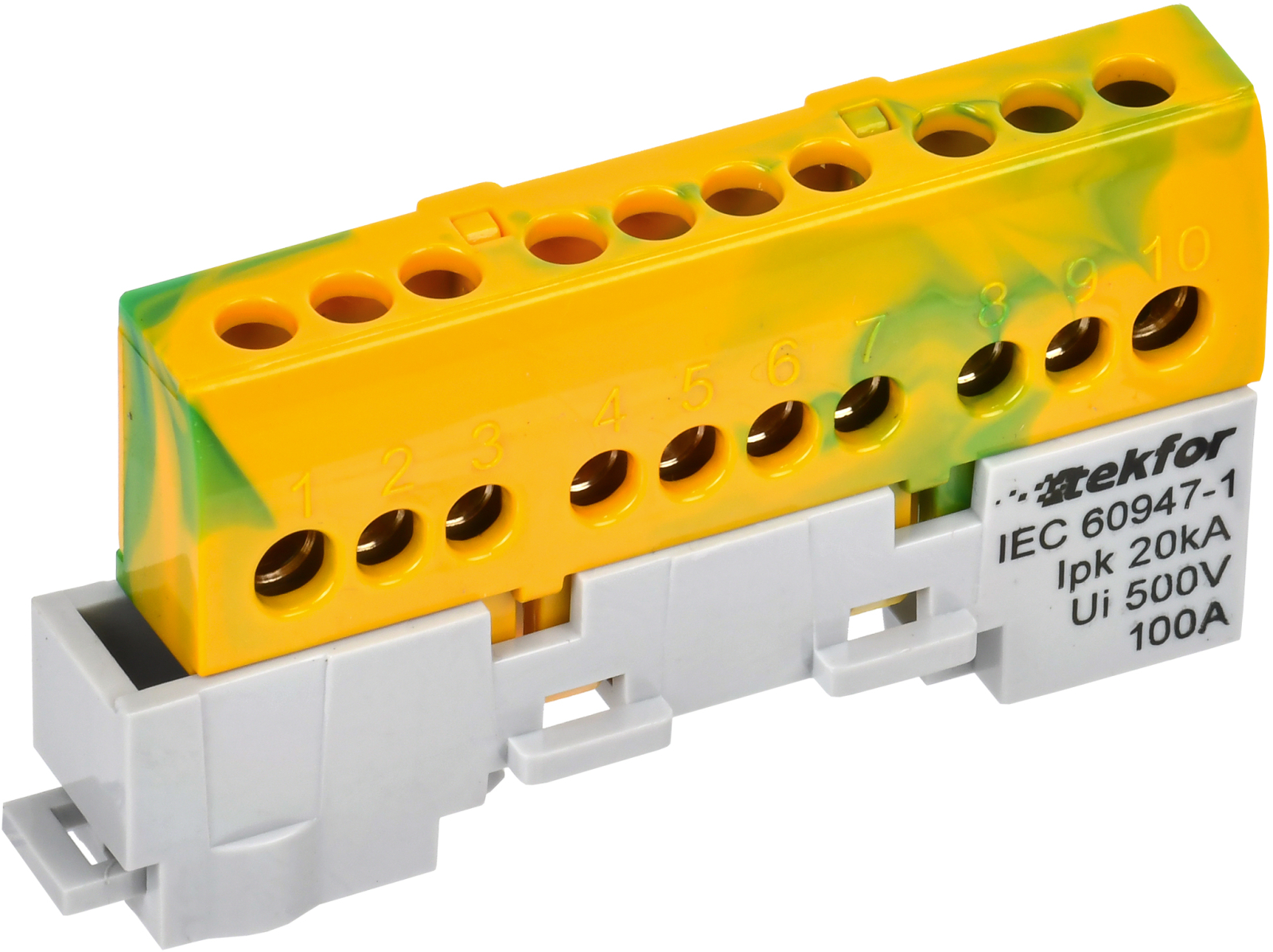 Шина "0" PE 8x12мм 6 отверстий латунь с контактной пластиной 2 зелёных угловых изолятора EKF PROxima